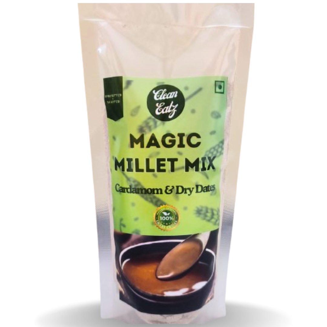 Discover the magic of optimal health with CleanEatz’s Magic Millet Mix. This unique blend combines the finest millet grains with the natural sweetness of dry dates and the aromatic essence of cardamom. Our Magic Millet Mix is an exceptional source of fiber, protein, and essential nutrients, offering a delicious and nutritious boost to your daily diet.