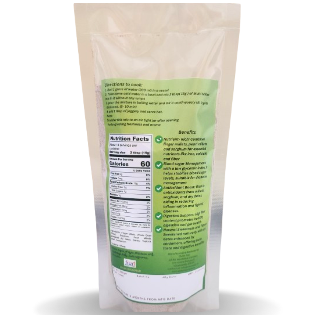 - Antioxidant Boost: Rich in antioxidants from millets, sorghum, dry dates, and cardamom, aiding in reducing inflammation and fighting diseases.